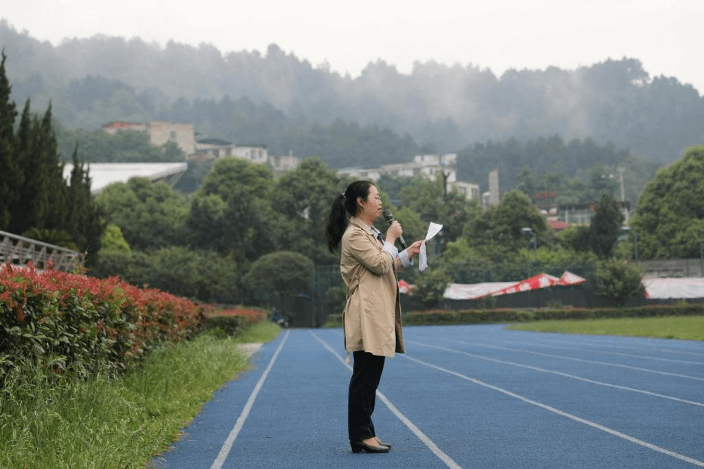 马克思主义学院李海燕老师在国旗下讲授《狱中绣红旗》党史故事。