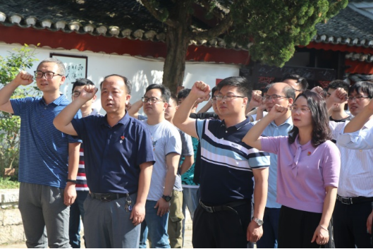 参观完后全体师生党员在王若飞雕像前重温入党誓词,学院党总支书记潘健林同志作了总结讲话,他要求全体党员一是要学习王若飞同志对党绝对忠诚的革命信仰。要以先辈先烈为镜,加强政治历练,不断提高政治判断力、政治领悟力、政治执行力;二是学习王若飞同志的为民情怀。要力戒形式主义、官僚主义,进一步深入基层联系基层,提升师生满意度和获得感;三是学习王若飞同志严于律己、干净担当的政治品格。要时刻警醒自己,抵制享乐主义、奢靡之风,永葆共产党人清正廉洁的政治本色。
