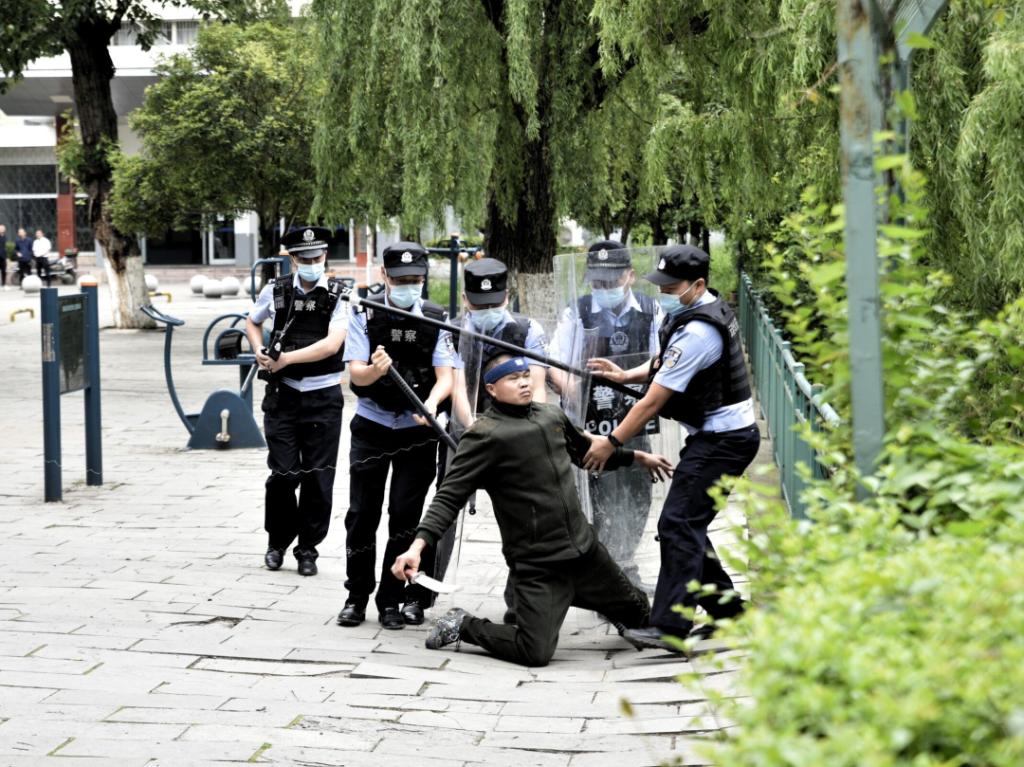 //场景二:持刀“歹徒”进入校园意图挟持学生演练现场