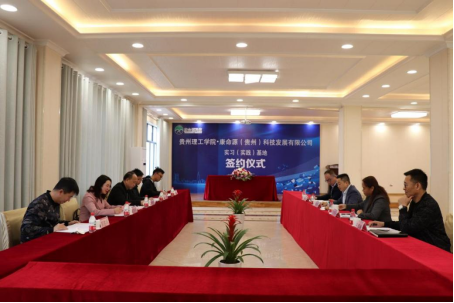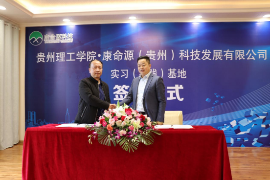 本网讯(材料与能源工程学院 蔺锡柱/图文)2021年4月28日上午,贵州理工学院材料与能源工程学院与康命源(贵州)科技发展有限公司共建实习(实训)基地签约及揭牌仪式在康命源公司举行,康命源(贵州)科技发展有限公司副董事长赖海军、董事长助理李春阳、常务副总经理金政华、遵义公司总经理王泰峰,材料学院党总支书记潘健林、党总支副书记夏雍、副院长周登凤、罗大军博士出席会议。