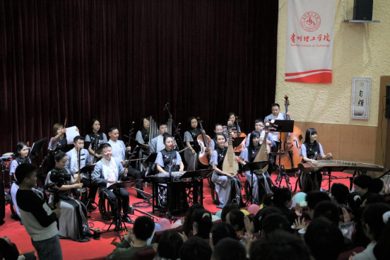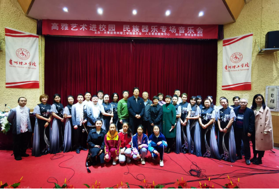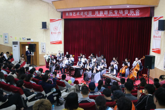 本网讯(人文素质教育中心 田蕾文/彭钰图)2021年4月16日下午,我校人文素质教育中心、校团委联合特别邀请贵州省民族管弦乐团的演奏家们为我校师生举办民族器乐专场音乐会,让大家现场感受传统民族音乐的魅力,更加了解中华民族优秀的传统文化。校领导苏向东出席了本次音乐会,现场近300余师生观看。