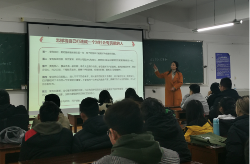 讲座的最后,回归到了怎样将自己打造成一个对社会有贡献的人这个话题。她表示一个人要想取得成功,成为一个对社会有贡献的人,就必须要树立远大的理想,要把自身的命运与国家的发展紧密联合在一起,只有以远大目标为航标,才会克服自己的性格障碍和沿途各种困难。磨砺耐性,取得成功。