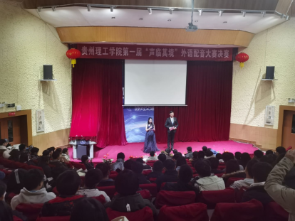 本网讯(外国语学院 文/张安娜 图/文抒芊 李怿嘉)为丰富校园文化生活,让更多同学体会英语学习的乐趣,提高英语的实际运用能力,为英语爱好者提供一个展示自己的平台,12月9日晚,我院与国际教育学院学生会在蔡家关校区逸夫小礼堂举办贵州理工学院首届“声临其境”英语配音大赛决赛。