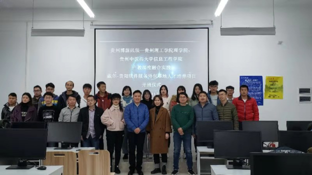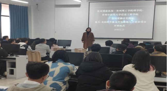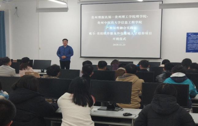 本网讯(理学院 黄磊/文)2020年11月23日,戴尔—贵阳软件服务外包基地人才培养项目开班仪式在贵州理工学院G3423教室成功举行,理学院相关领导、合作单位的领导及工作人员、本次项目的任课教师参加了此次开班仪式。
