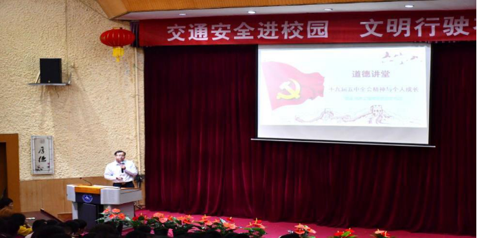当晚的逸夫小报告厅气氛热烈,蔡诚以《十九届五中全会精神与个人成长》为题进行宣讲。蔡诚在宣讲中强调,十九届五中全会是在我国将进入新发展阶段、实现中华民族伟大复兴正处在关键时期召开的一次具有全局性、历史性意义的重要会议,中国共产党站在“两个一百年”奋斗目标的历史交汇点上,为中国擘画了一幅波澜壮阔的新图景。