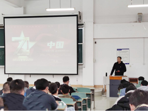 孙凯用通俗易懂的语言为学生们讲述了新中国成立71年以来我国取得的伟大成就和五大圆梦工程。他强调,中国秉着和平崛起的态度,不断发展,不断进步,中国的日渐强大有目共睹,中国发展的潜力不可估量。孙凯指出,作为新时代大学生,同学们应努力学习,奋发图强,勇于争先。