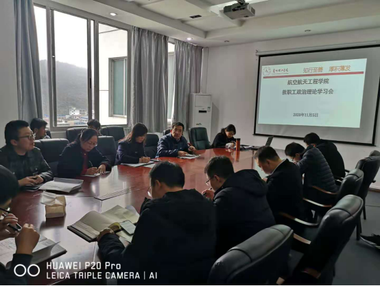 本网讯(航空航天工程学院 高宏建/图文)11月5日下午,航空航天工程学院召开教职工政治理论学习会议,会议由党总支书记李青主持,航院全体教职工参加。
