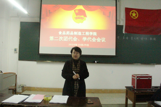 本网讯(文/江城 图/罗玉飞 练佳鑫)10月29日晚,食品药品制造工程学院召开团学代表会议,选举共青团贵州理工学院团代会、学代会代表。会议由学生科刘云雁老师主持,两个校区通过线上线下结合的方式同步进行,学生科黄文粤老师在贵安分会场组织会议,校团委组织部工作人员负责纪检监察。学院党总支副书记唐维媛在蔡家关会场出席会议,并就选举纪律进行强调。