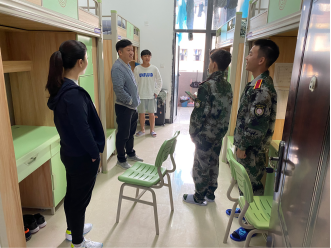 本网讯(理学院张梦/文图)9月23日上午10点,理学院党总支书记袁小松、党总支副书记蒙蔺及理学院2020级新生辅导员张梦,走访了新生宿舍,看望2020级新生。