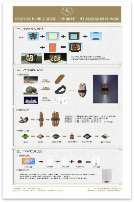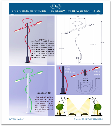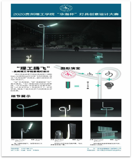 为深化产教融合、促进校企合作、加强学生实践能力,助推企业设计创新研究,今年暑期我校举办了“2020贵州理工学院‘华瀚杯’灯具创意设计大赛”。大赛以“校园之光-贵州理工学院新校区灯具创意设计”为主题,要求学生设计以景观照明为主的灯具。经来自企业、行业、高校组成的评委团评审,评选出一等奖1件、二等奖2件、三等奖3件、优秀奖8件。