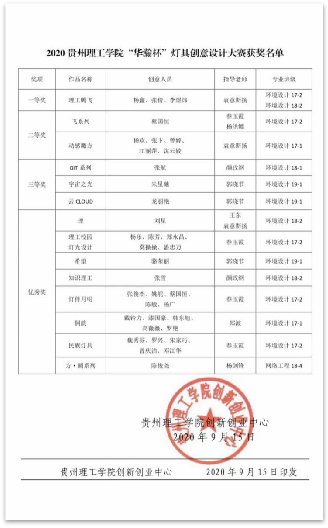 本讯网(建规学院 吴宇/文图)近日,由我校创新创业中心、贵州华瀚照明工程有限公司联合主办的“2020贵州理工学院‘华瀚杯’灯具创意设计大赛”评选结果揭晓,建筑与城市规划学院环境设计专业多名学子荣获大赛一、二、三等奖。