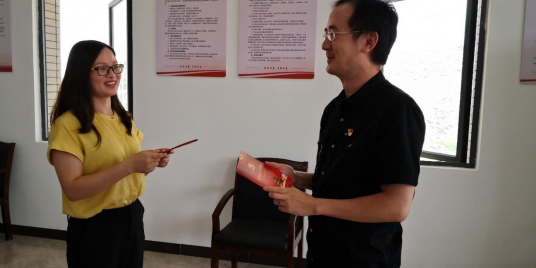 党总支副书记吴开慧同志为过政治生日的党员代表送贺卡,并送上了党组织的殷切祝福。