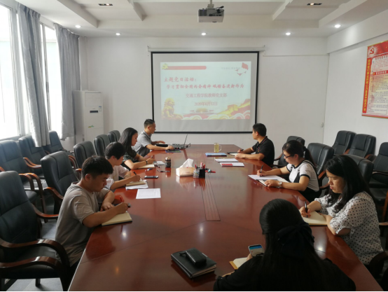 本网讯(交通工程学院 于静)为进一步坚定信心,凝聚力量,学习贯彻落实全国两会精神。2020年6月12日,交通工程学院党总支通过腾讯会议的方式,组织开展了“学习贯彻全国两会精神,砥砺奋进新作为”主题党日活动,活动由教师党支部书记邹俊辉主持,支部全体师生党员参加。