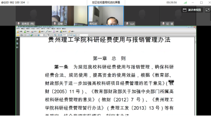 会上,副院长周知进全文传达学习《贵州理工学院科研经费管理暂行办法》,结合省委第十巡视组巡视反馈意见,他强调,广大科研人员一要重视对学校科研经费政策的学习、消化和吸收,二要按学校相关要求科学合理编制经费预算,提高科研经费使用执行率水平,三要依规依纪,规范报销科研经费,杜绝科研经费造假、骗取、套现等违纪违法现象发生。