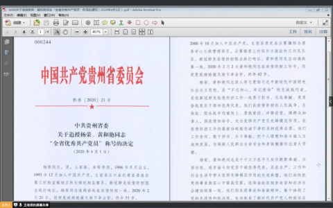 王喆领学习了《中共贵州省委关于追授杨荣、黄和艳同志“全省优秀共产党员”称号的决定》文件精神,并组织观看了《用生命践行初心和使命》先进事迹报道视频。