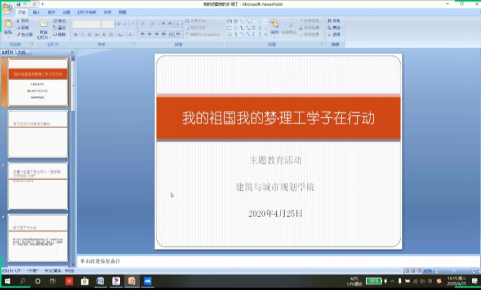 本网讯(建规学院卢学兰)为积极应对新冠肺炎疫情,坚决打赢这场人民战争、总体战、阻击战,4月25日,建规学院组织学生党员、发展对象及入党积极分子在线上开展“我的祖国我的梦·理工学子在行动”主题教育活动。