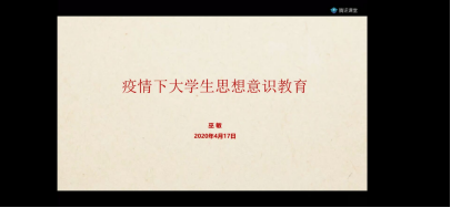 本网讯(机械工程学院 杨涛/文)“士不可以不弘毅,任重而道远。国家的前途,民族的命运,人民的幸福,是当代中国青年必须和必将承担的重任。” 4月17日晚上8点,机械工程学院“云”上开讲“疫情下大学生思想意识教育”,主讲人学院党总支副书记巫敏与师生准时相约腾讯课堂。