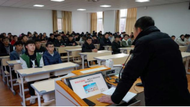 本网讯(化学工程学院 杨红艳/文 付飞飞/图) 12月6日,化学工程学院党总支副书记宋明江在第二教学楼211教室,为同学们讲述“青年大学生的自信与担当”,化学工程学院部分学生代表参加了活动。