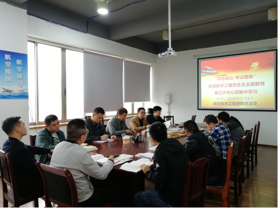 本网讯(航空航天工程学院 于茂竹/文图)11月6日下午,航空航天工程学院党总支在行政楼1318会议室召开“不忘初心、牢记使命”主题教育第三次专题集中学习研讨活动。学校第四巡回组组长刘承章出席会议,学院党总支班子成员、教师党支部成员、学院全体师生党员参加研讨,组织员罗波主持会议。