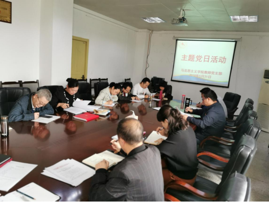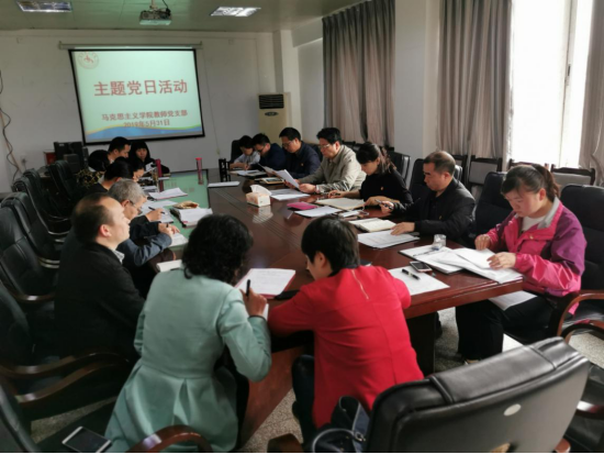 本网讯(马克思主义学院曾凯/文 张建军/图)为进一步激发全体党员在本科教学工作合格评估中发挥党员先锋模范作用,讲政治、守纪律、勇担当、敢作为,确保学校顺利通过本科教学工作合格评估,5月31日中午,学院教师党支部在行政楼1125会议室开展“悟初心·强党性·见行动·出成效”主题党日活动。全体党员参加活动。