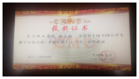 本网讯(理学院 宋家彬)近日,第十届全国大学生数学竞赛决赛在哈尔滨工业大学举行,来自全国31个赛区的539名同学(其中数学专业组220人,非数学专业组319人)参加了决赛,理学院教师宋家彬作为指导教师带领我校航空航天工程学院的徐永超同学在非数学专业组的决赛中获得三等奖,体现了我校学生较为扎实的数学基础知识。