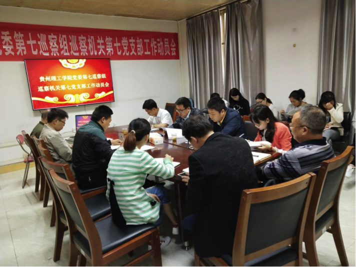 本网讯 2019年4月10日上午10点30分,贵州理工学院党委第三轮第七巡察组巡察机关第七党支部工作动员会在信息网络中心会议室召开,支部书记钟晓锋同志主持会议。巡视组全体成员、机关第七党支部及其组成部门处科级干部、支部全体党员、教师代表出席了会议。