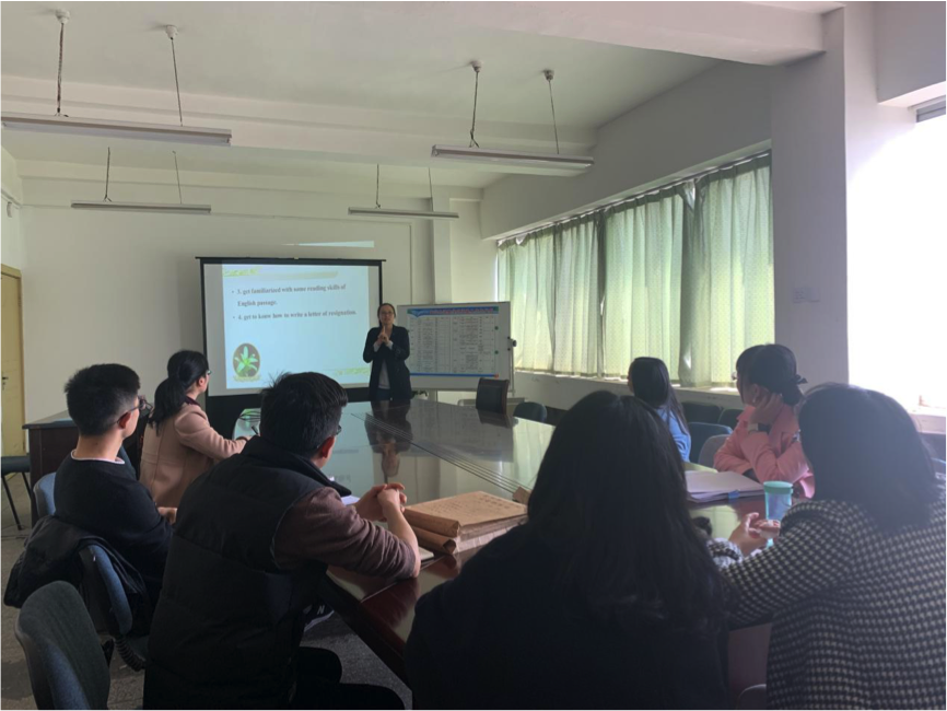 本网讯(大学外语教学部 彭立飞)2019年3月30日上午,大学外语教学部教师党支部在行政楼1102会议室举行第一季度支部党员大会。本次大会由支部副书记吉胜芬同志主持,全体党员参加。