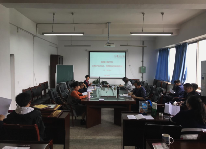 本网讯(机械工程学院 王珊)为进一步做好机械工程学院本科教学工作合格评估工作,充分调动教职工投入到迎评工作中的积极性,确保本科教学工作合格评估顺利通过,4月12日下午,学院在1001会议室召开了合格评估知识、校情知识宣讲培训会。