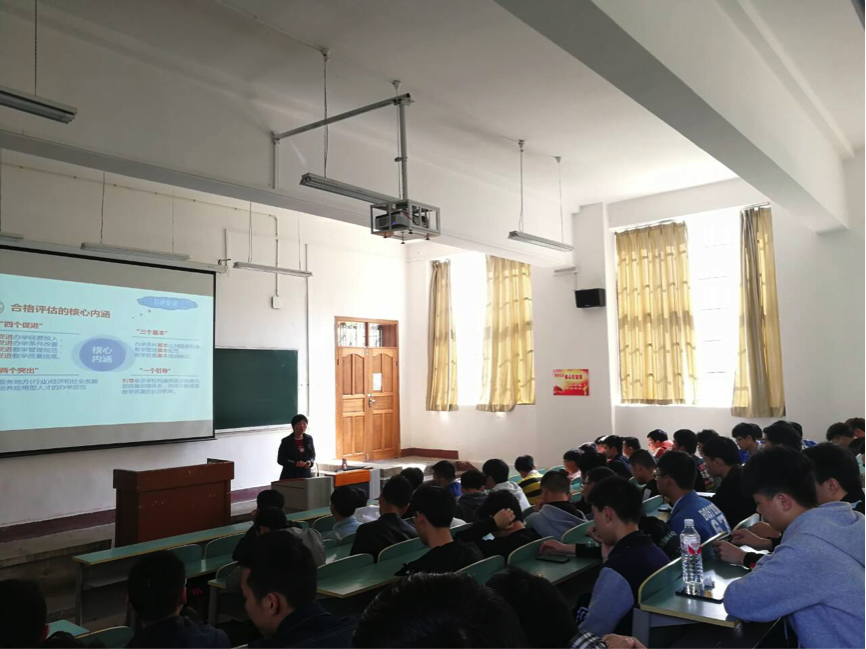苏利荣从评估的重要意义、评估指标内容、学生的使命和职责、评估承诺书等几方面进行详细解读。她指出,评估是对我校教学和人才培养工作的一次全面梳理和总结,是对我校6年办学水平和教育质量的一次综合评估,全院同学应充分认识评估工作的重大意义,以主人翁意识和高度的责任感参与进来。