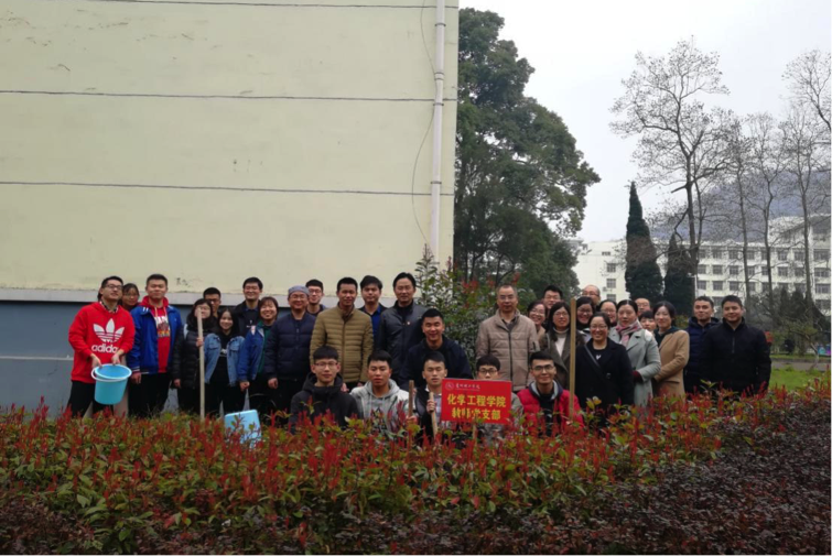 本网讯(化学工程学院 张妙鹤)恰逢植树节的来临,在这个充满生机的时刻,3月12日上午10点,化学工程学院党总支全体党员在学院党总支书记徐平、院长唐安江的带领下,在校园内开展义务植树活动,为创建绿色校园、和谐校园贡献力量。