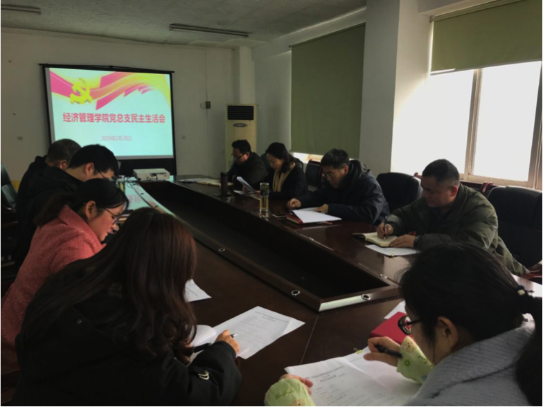 本网讯(经济管理学院,胡薇)根据学校党委关于召开2018年处以上党员领导干部民主生活会的工作部署,经济管理学院党总支在认真完成会前学习、征求意见、撰写对照检查发言提纲的基础上,经上级批准,于2月28日下午召开了2018年度民主生活会。院长龙奋杰作为联系校领导到会指导。学院党总支班子成员参加本次会议。经管学院支部委员、科室负责人及民主党派和党外教师代表列席会议。