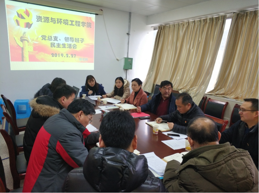 本网讯(资源与环境工程学院文/于晓红 图/李永)2019年2月27日上午,资源与环境工程学院在学院会议室召开了党总支领导班子2018年度民主生活会。贵州理工学院党委书记曾羽同志参加了会议,对会议的召开进行督导。学院领导班子全体成员参加会议,各科室负责人、部分教师代表、学生党员代表列席会议。