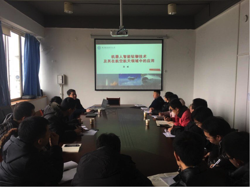 在交流座谈会上,田威教授对南航航空宇航制造工程系的概况进行简要介绍,并作了题为“机器人智能钻铆技术及其在航空航天领域的应用”的学术报告。报告中,田威教授就其所率团队在智能制造领域的研究工作与成果为主线,详细介绍了该技术在航空航天领域的应用发展潜力,并和与会教师就贵州省发展智能制造技术的方向与重要性进行了深入探讨。
