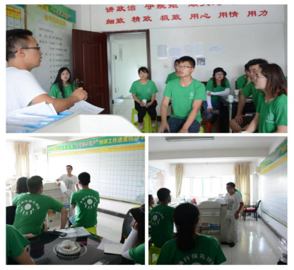 本网讯(化学工程学院 乡镇环保先锋队)为积极响应习近平总书记在十九大报告中的讲话精神,坚持人与自然和谐共生,树立和践行绿水青山就是金山银山,坚持节约资源和保护环境的理念,7月23日,由贵州理工学院化学工程学院的同学组成的“乡镇环保先锋队”在毕节市黔西县甘棠镇开展了为期八天的暑假“三下乡”实践活动。