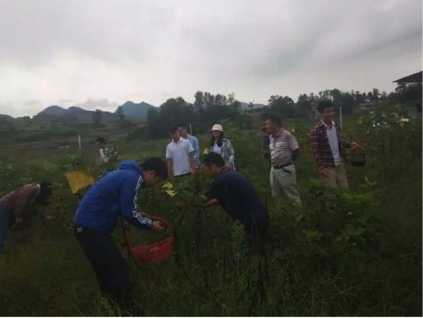 活动期间,101创队还徒步跋涉至数公里外的田间地头,义务帮助当地村民采摘水果。清晨露水重,水果有着特殊的粘液,采摘完后,队员们的裤子鞋子早已打湿,指甲也有不适感,但因为可以帮助村民,队员们心里感到无比的高兴。