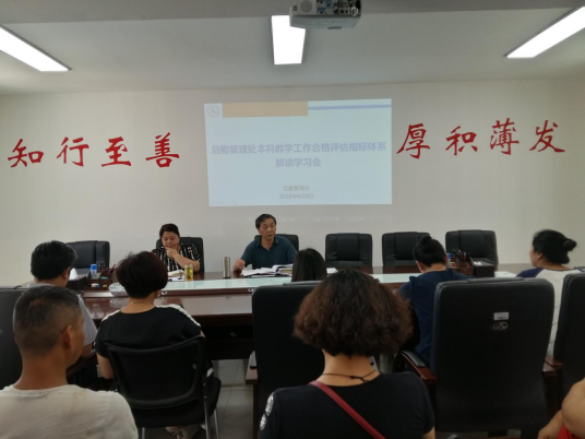 本网讯(后勤管理处 易欣)为贯彻落实好学校对本科教学工作合格评估的相关工作要求,进一步加强对评估相关知识的学习,为迎接2019年本科教学工作合格评估做好充分的准备,6月8日,后勤管理处组织召开了本科教学工作合格评估指标体系解读学习会。后勤管理处全体成员参加本次学习活动。