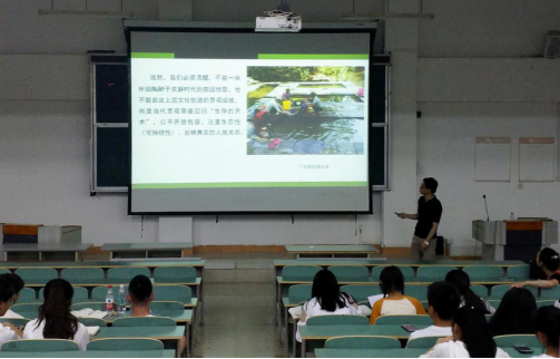 本网讯(建规学院 严勇)6月7日晚,建筑与城市规划学院“知行讲坛”第二期在三教415教室开讲,学院教师颜政纲博士为学院全体学生带来题为“大地艺术”的讲座。院党总支书记张艳、辅导员陈梦玲参加讲座。