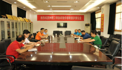 本网讯(体育教学部 田广)5月15日下午,贵州理工学院体育教学部党总支书记任永开、部长高徐率部门相关人员前往湖北工业大学体育学院就本科教学合格评估工作的相关事宜进行考察学习。湖北工业大学体育学院院长兼总支书记代永胜、副院长徐宣、张军平热情接待了我校一行。