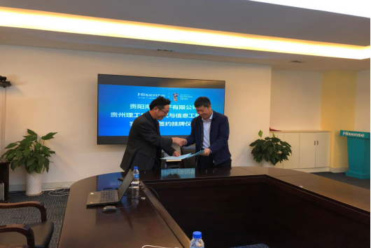 签约仪式上,张均对我校电气工程及其自动化相关专业情况以及学生学习就业情况等进行了介绍,并希望贵阳海信电子有限公司在人才培养方面提出宝贵意见,实现双方开展持续深入的合作。温洪刚详细介绍了贵阳海信电子有限公司的生产销售运营及公司的人才需求等情况,并期望学校能推荐更多的优秀人才进入公司工作。会上,双方还就具体的合作事宜进行了深入洽谈。随后,双方举行了签约挂牌仪式,这也标志着双方长期合作关系正式确立。