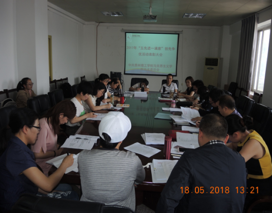 会上,学院党总支书记金敏宣读了马克思主义学院2018年《关于开展“五先进一满意”深化创先争优活动方案》。