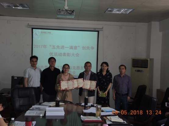 本网讯(马克思主义学院 葛楠)为全面提升部门教学科研管理服务水平,马克思主义学院党总支将“创先争优”积极落实在行动上,结合学院实际情况开展了一系列卓有成效的活动,鼓励创新,倡导实干,努力营造“崇尚先进、积极向上、奋发有为”的良好氛围,5月18日,学院党总支召开了2017年开展“五先进一满意”深化创先争优活动总结暨党员先进岗表彰大会。