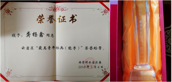 本网讯(宣传部 林春燕)5月4日,中共云岩区委、云岩区人民政府公布了2018年云岩区“最美青年标兵(能手)”名单,我校土木工程学院龚杨鑫同学荣获该荣誉称号。