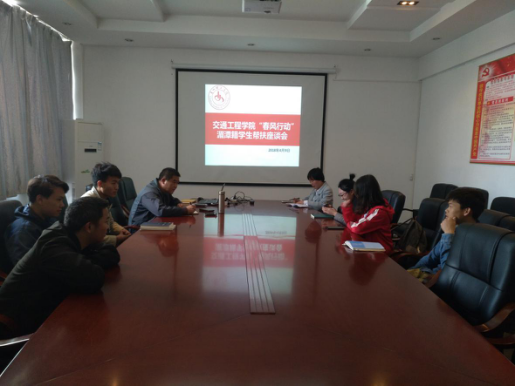 本网讯(交通工程学院 陈盼)为贯彻落实学校扶贫工作会议精神,响应学校“春风行动”,4月9日中午,交通工程学院党总支书记李学明和辅导员与湄潭籍学生,在院会议室召开了帮扶座谈会。