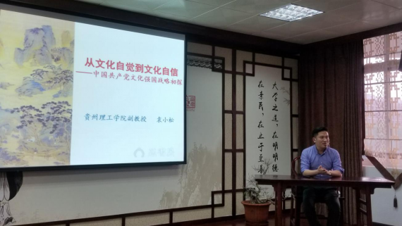 本网讯(理学院统计171班 尹玉琳)4月12日晚,理学院党总支副书记袁小松在学校图书馆四楼道德讲堂展开了一场关于中国文化的主题讲座,带领同学们一起领略中华文化的风采,感受中国文化的魅力。