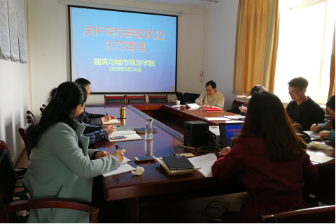 本网讯(建筑与城市规划学院胡婷)3月21日下午,建筑与城市规划学院全体教师党员齐聚学院会议室,深入学习研究“五步工作法”和高校廉政风险防控点,相互交流心得体会。