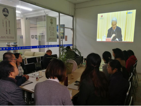 本网讯(图书馆 李幸)按照《关于举办“新时代学习大讲堂”第一期时代前沿知识专题讲座的通知》(黔组通[2018]16号)要求,图书馆党总支组织全体党员同志3月17日上午在图书馆会议室集中观看了专题讲座。