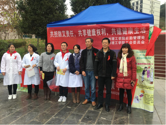 本网讯 2017年12月1日是第30个“世界艾滋病日”。为进一步提高广大师生对防治艾滋病重要性的认识,普及基本防治知识,保障师生的身心健康,当日,贵州理工学院工会委员会和后勤管理处联合在逸夫广场进行了“共担防艾责任,共享健康权利,共建健康生活”为主题的“世界艾滋病日”宣传活动。