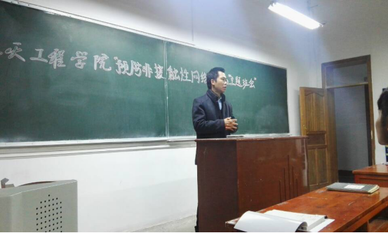 本网讯(航空航天工程学院 刘松)为进一步维护校园和谐稳定发展大局,规范学生上网行为,引导学生文明使用网络,11月23日晚,航空航天工程学院组织的“预防非接触性网络诈骗”主题教育活动在一教101教室举行,蔡家关派出所、学校保卫处相关负责人及航空航天工程学院2017级新生参加此次活动。