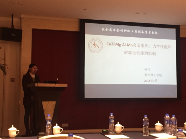 会上,我校材料与冶金工程学院副院长秦庆东、博士杨江和朱阮利分别作题为《Al-Mg2Si合金材料研究进展》《Ca对AM50镁合金组织、力学性能以及耐蚀性能的影响》《固化工艺对AZ91D镁合金硅烷膜结构性能的影响研究》专题报告;秦庆东教授应邀作为铝及铝合金加工与制备第一分会场的分会主席并主持了该分会场最后一阶段的报告。