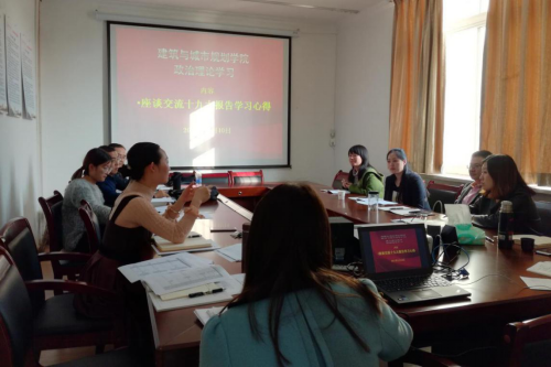 本网讯(建规学院 颜政纲)为深入学习贯彻党的十九大精神,更好地指导学院各项工作开展,11月10日下午,建规学院组织全体教师党员在学院会议室座谈交流十九大报告学习心得。院党总支书记张艳主持会议。